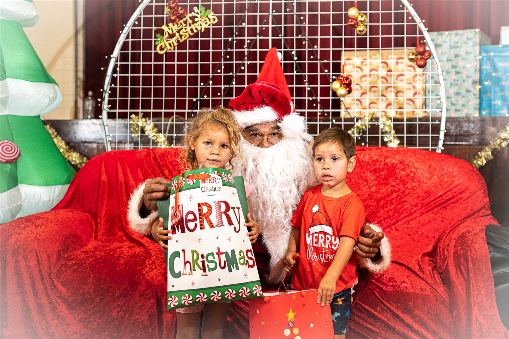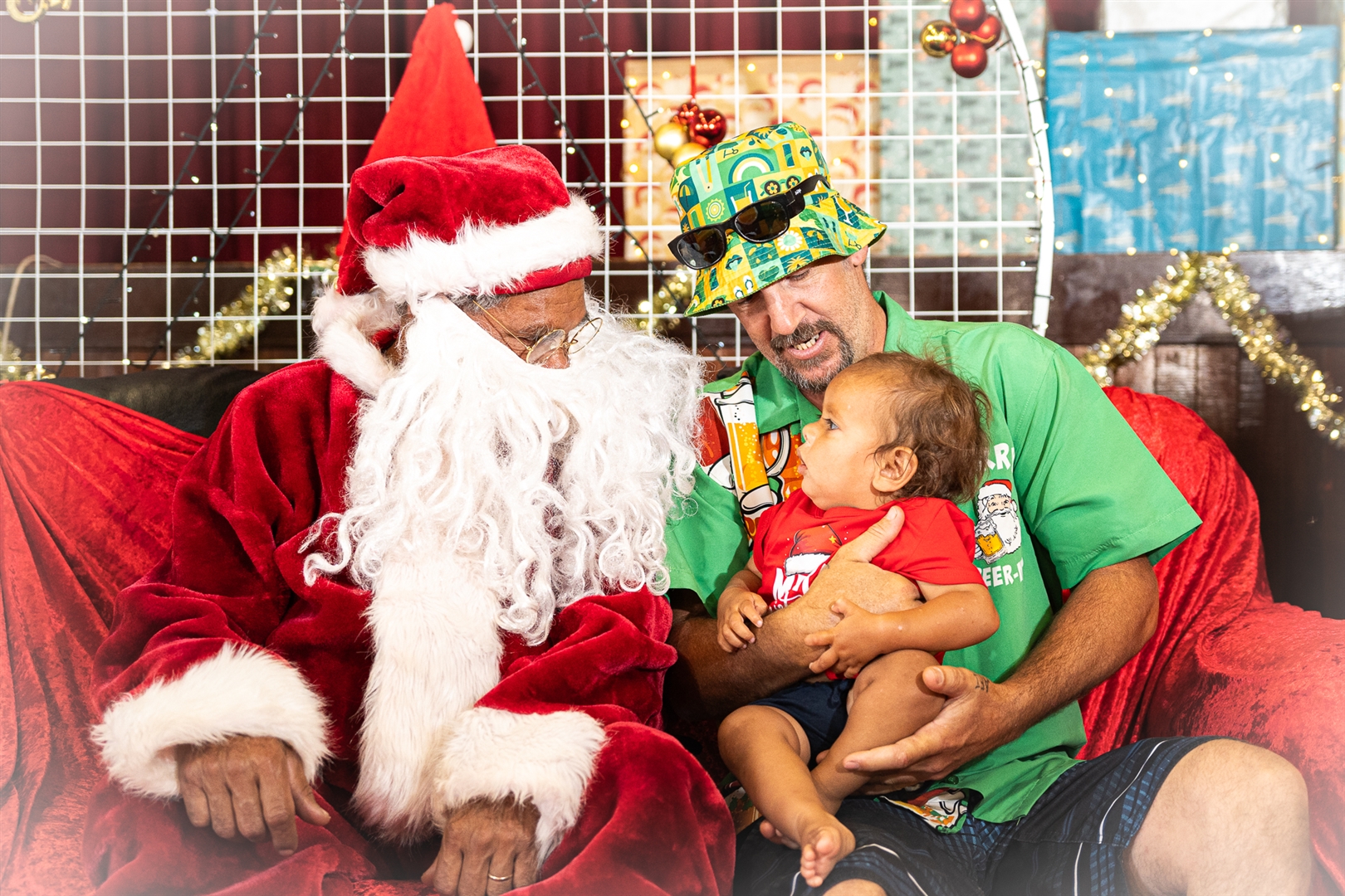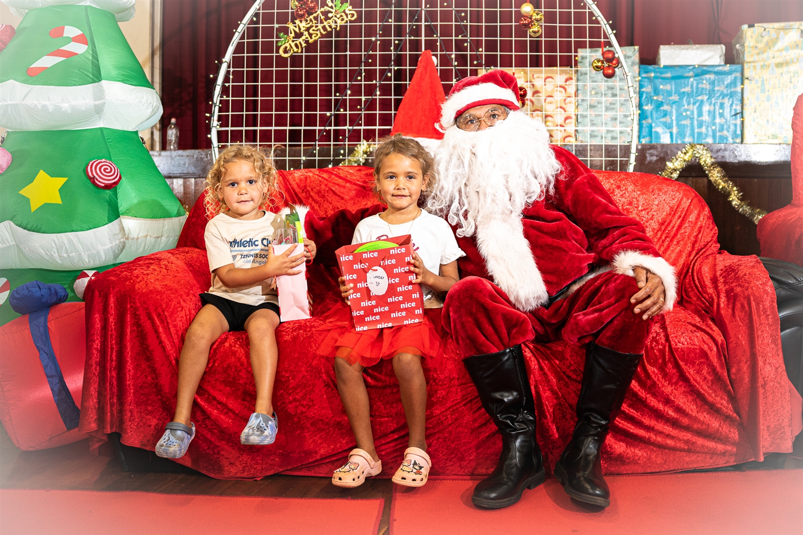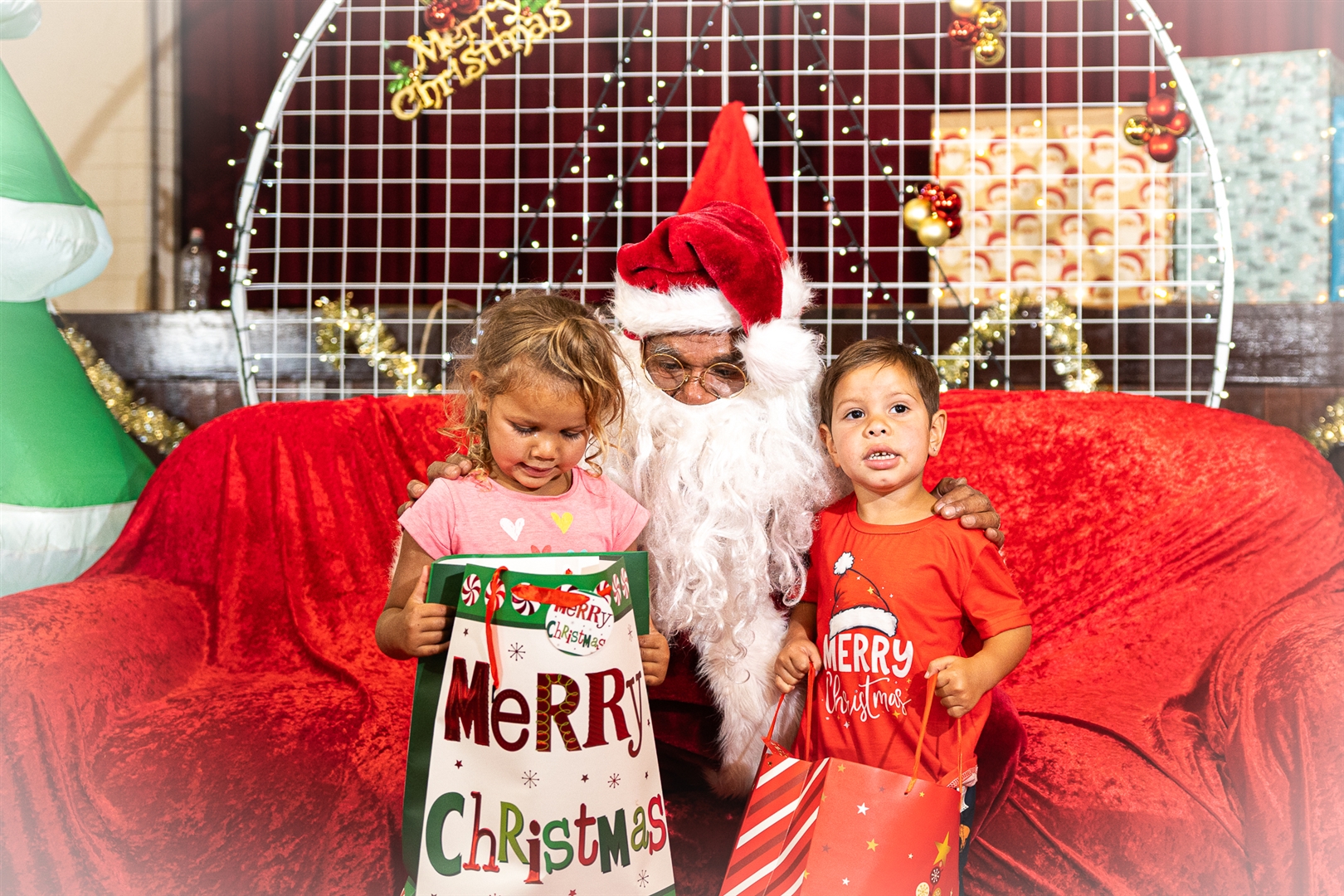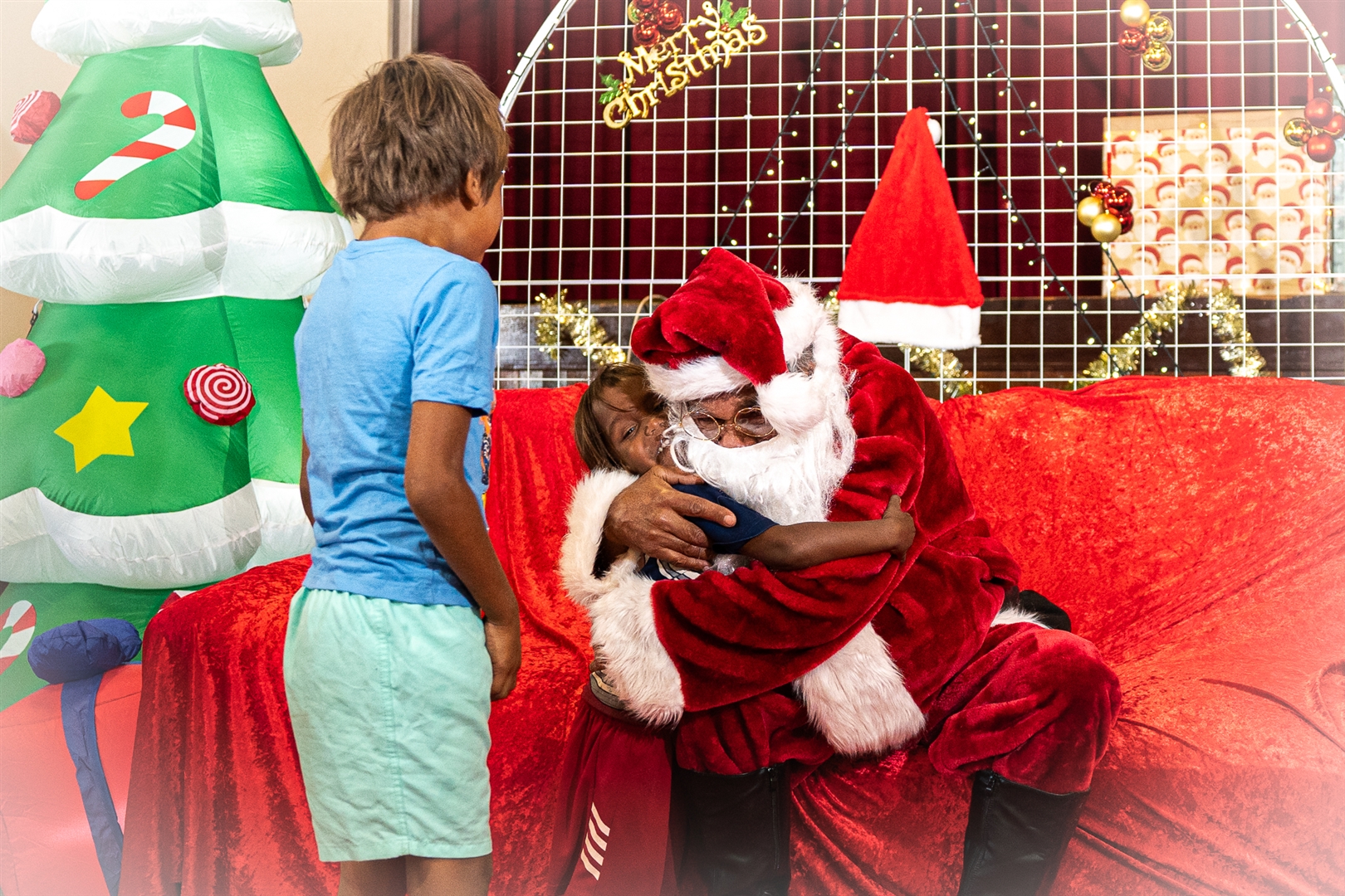 Photos with Santa, Christmas activities, community dinner and pool party.