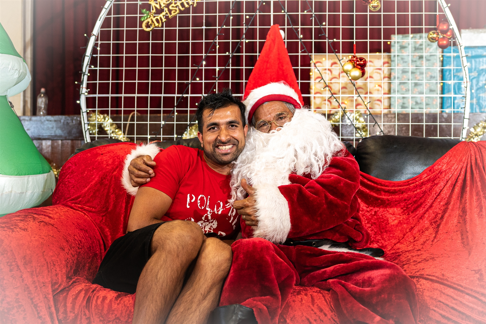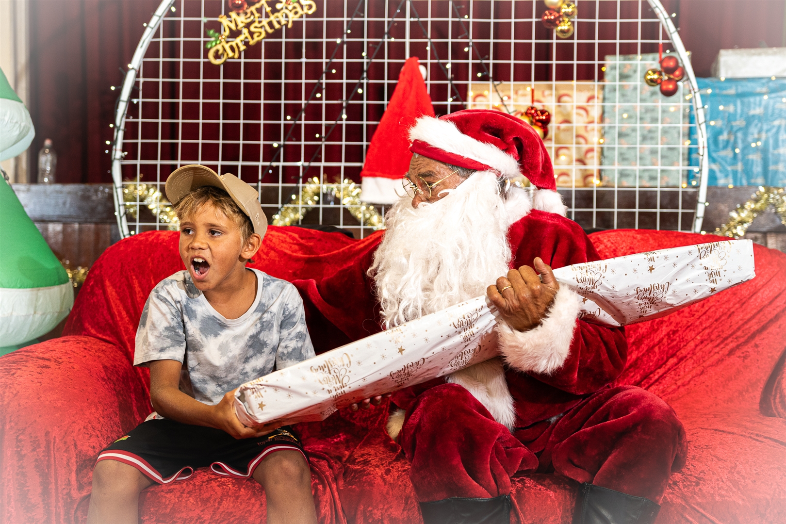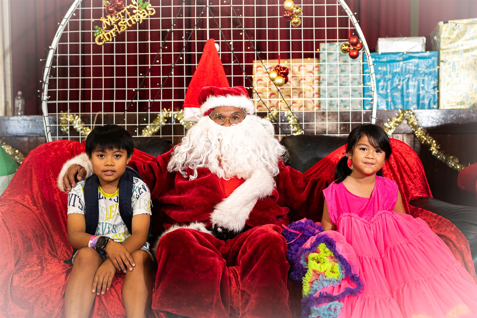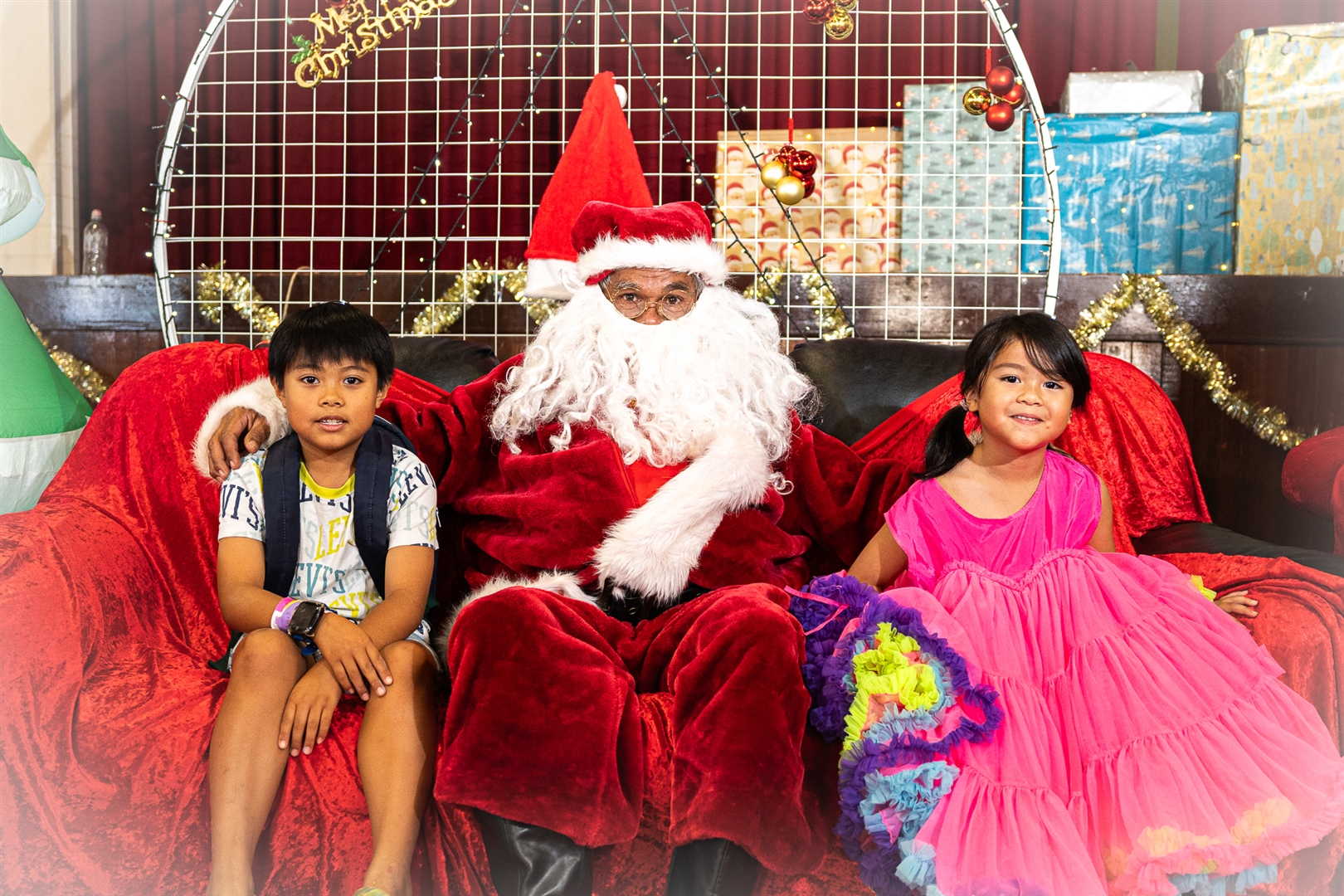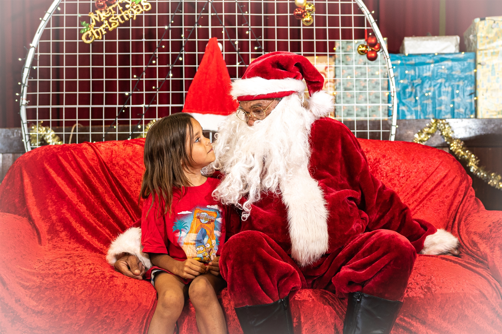 Photos with Santa, Christmas activities, community dinner and pool party.