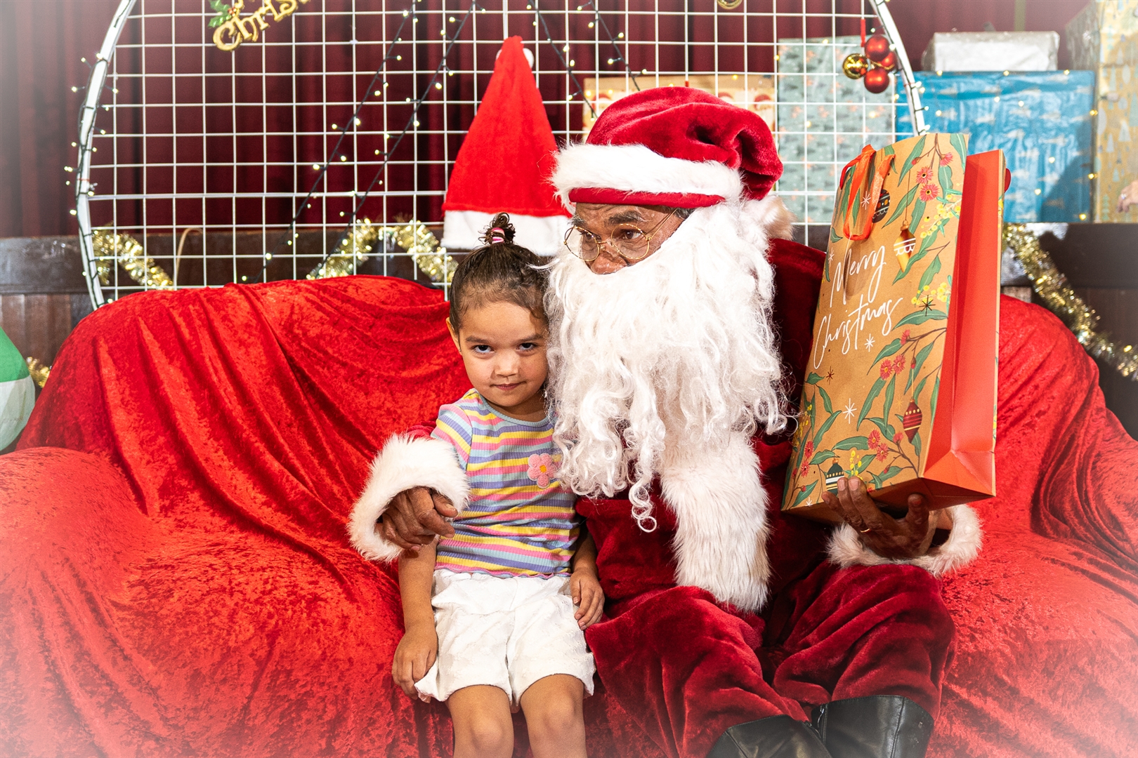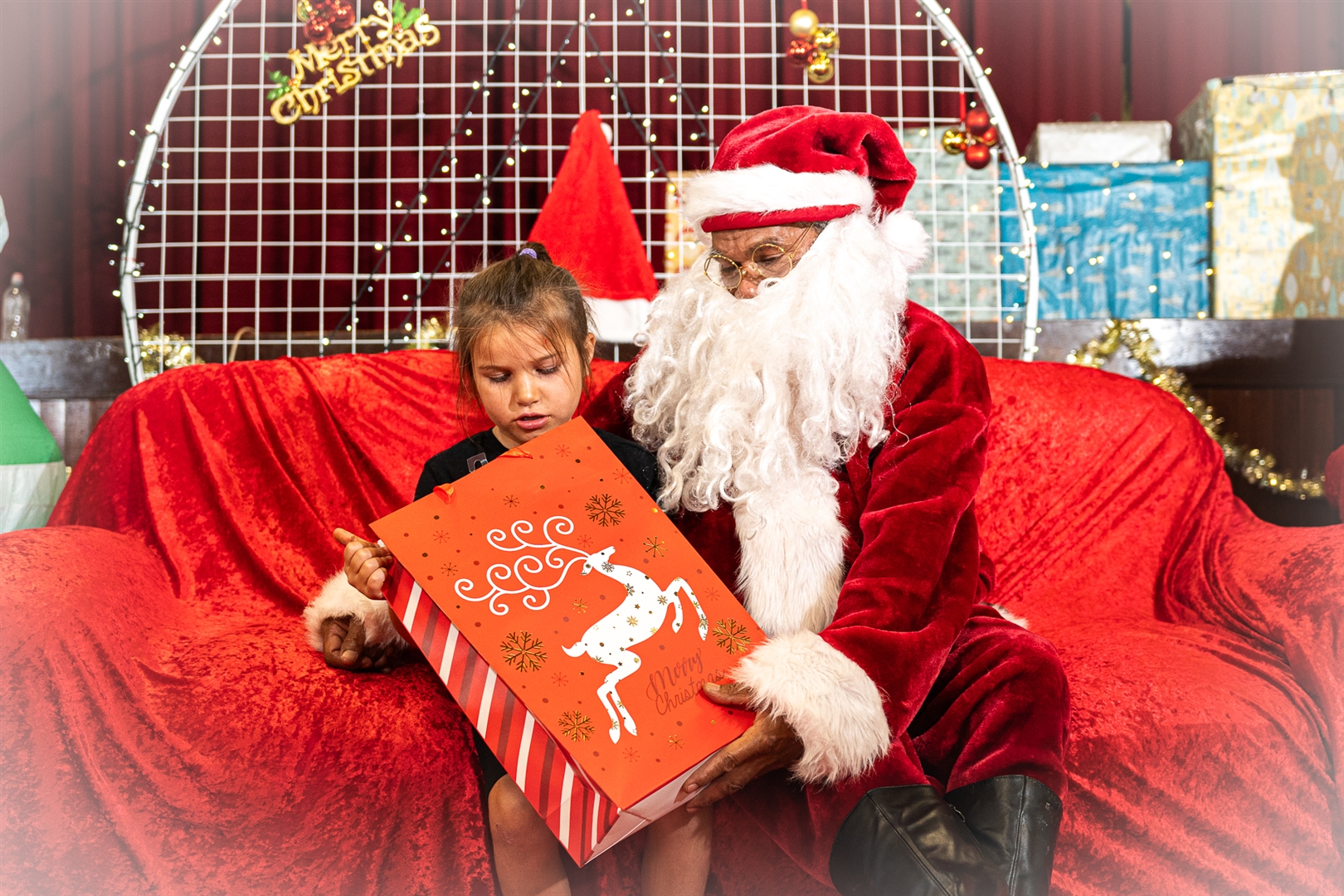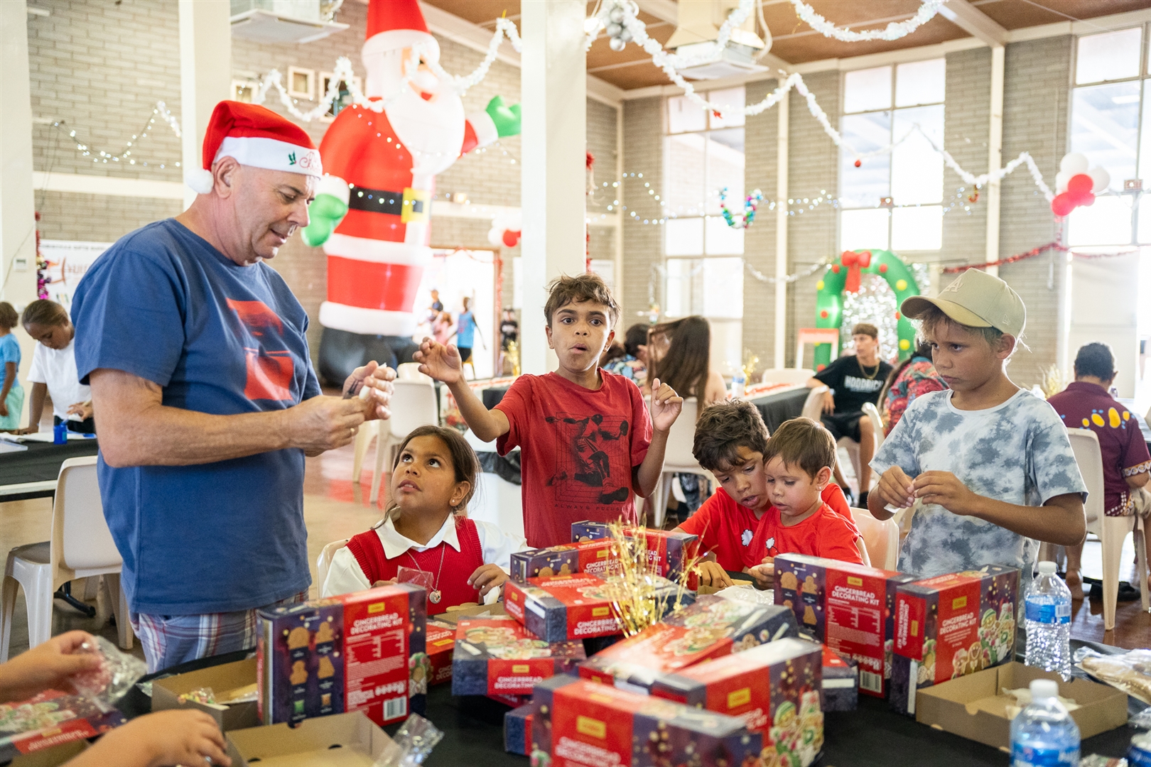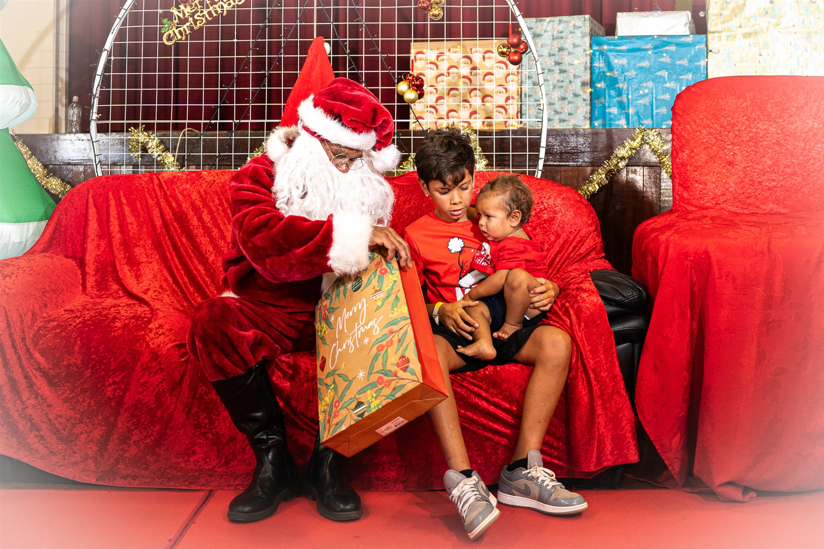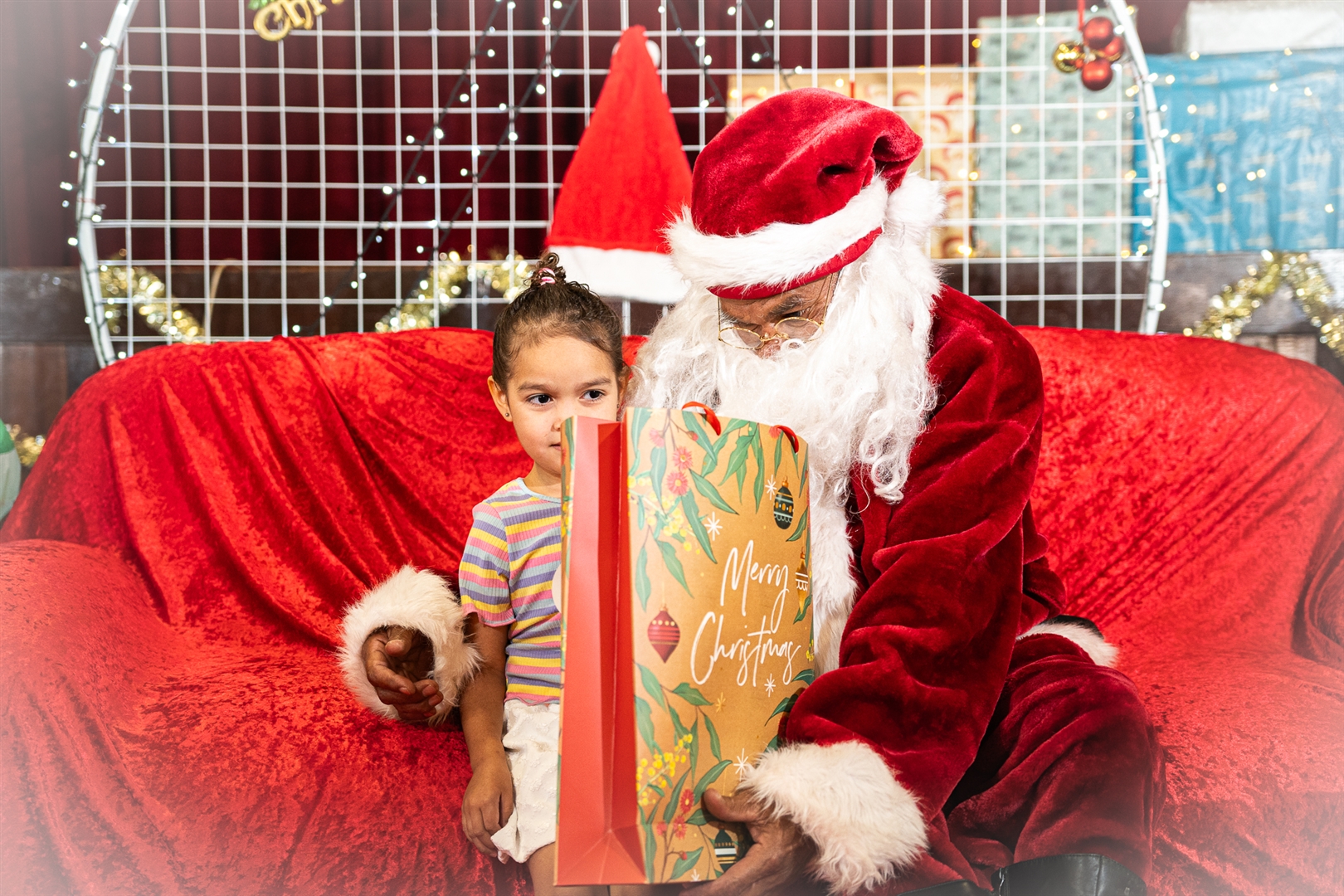 Photos with Santa, Christmas activities, community dinner and pool party.