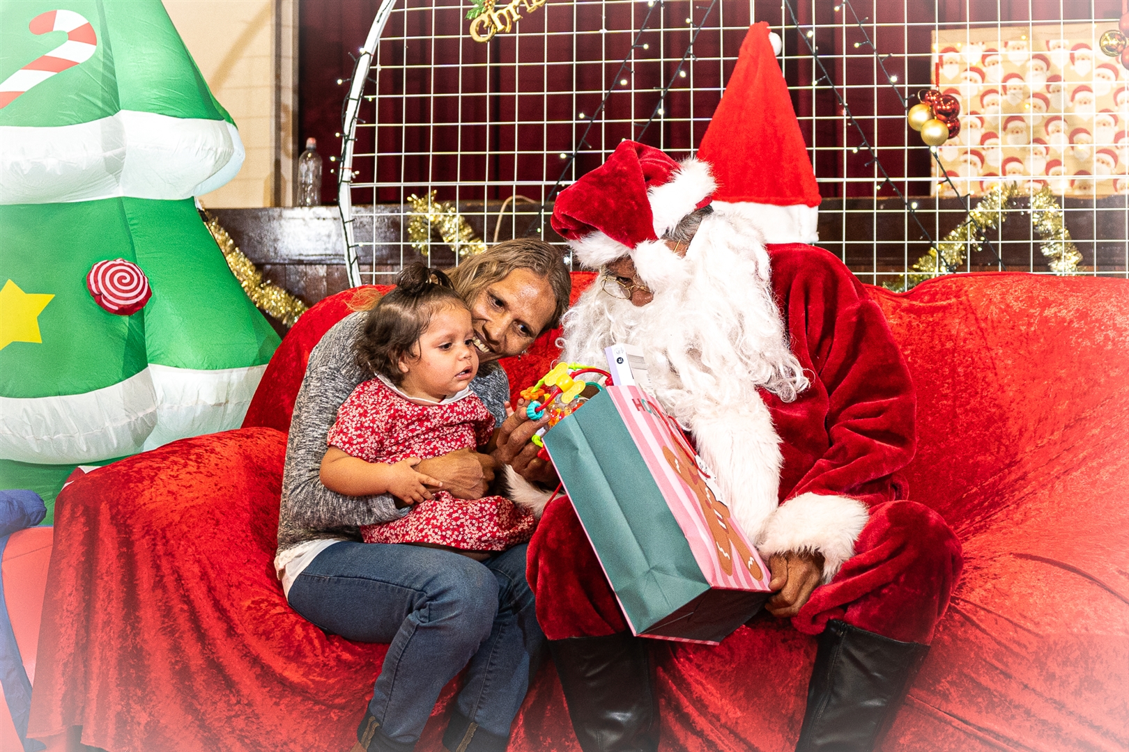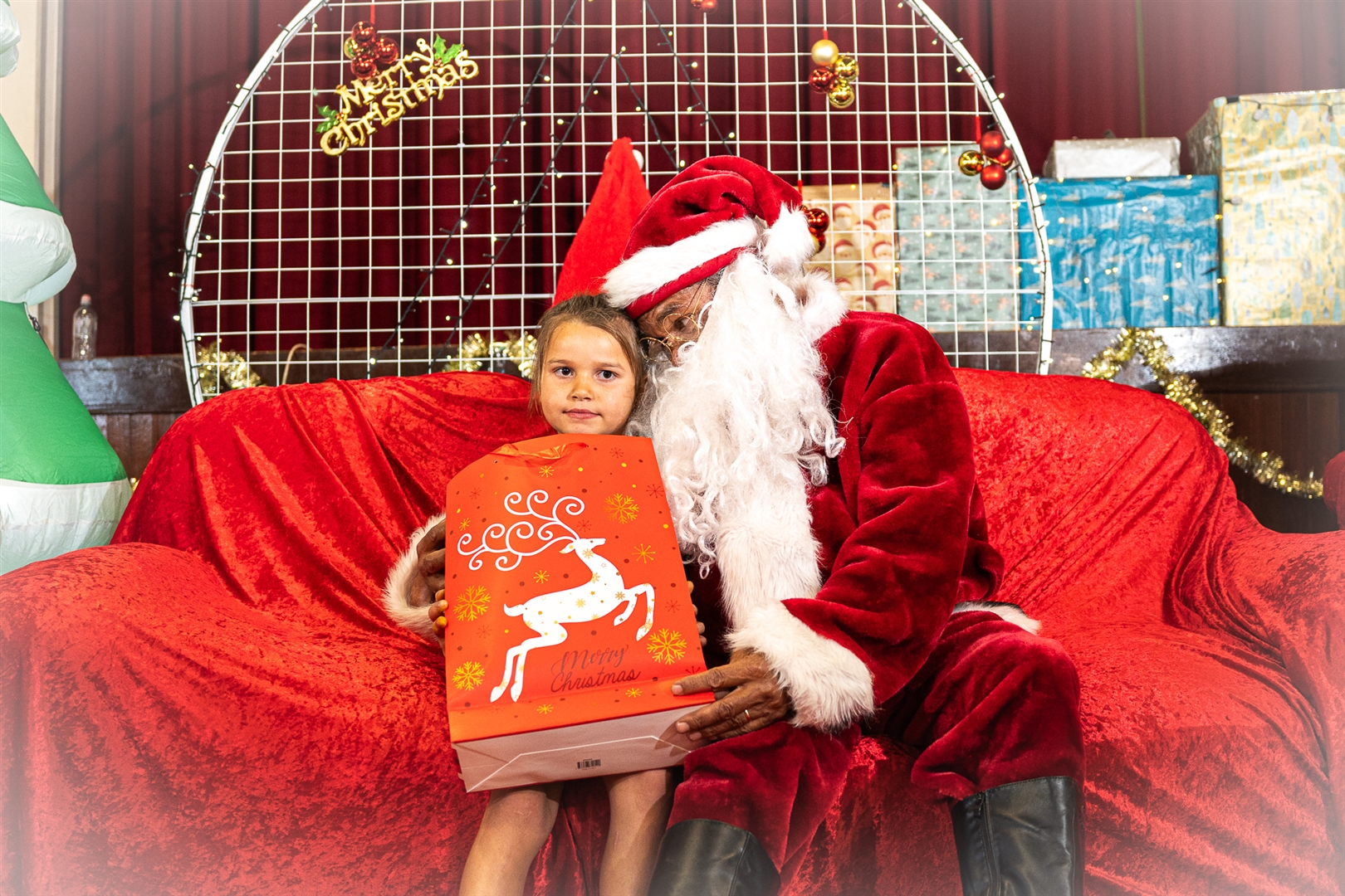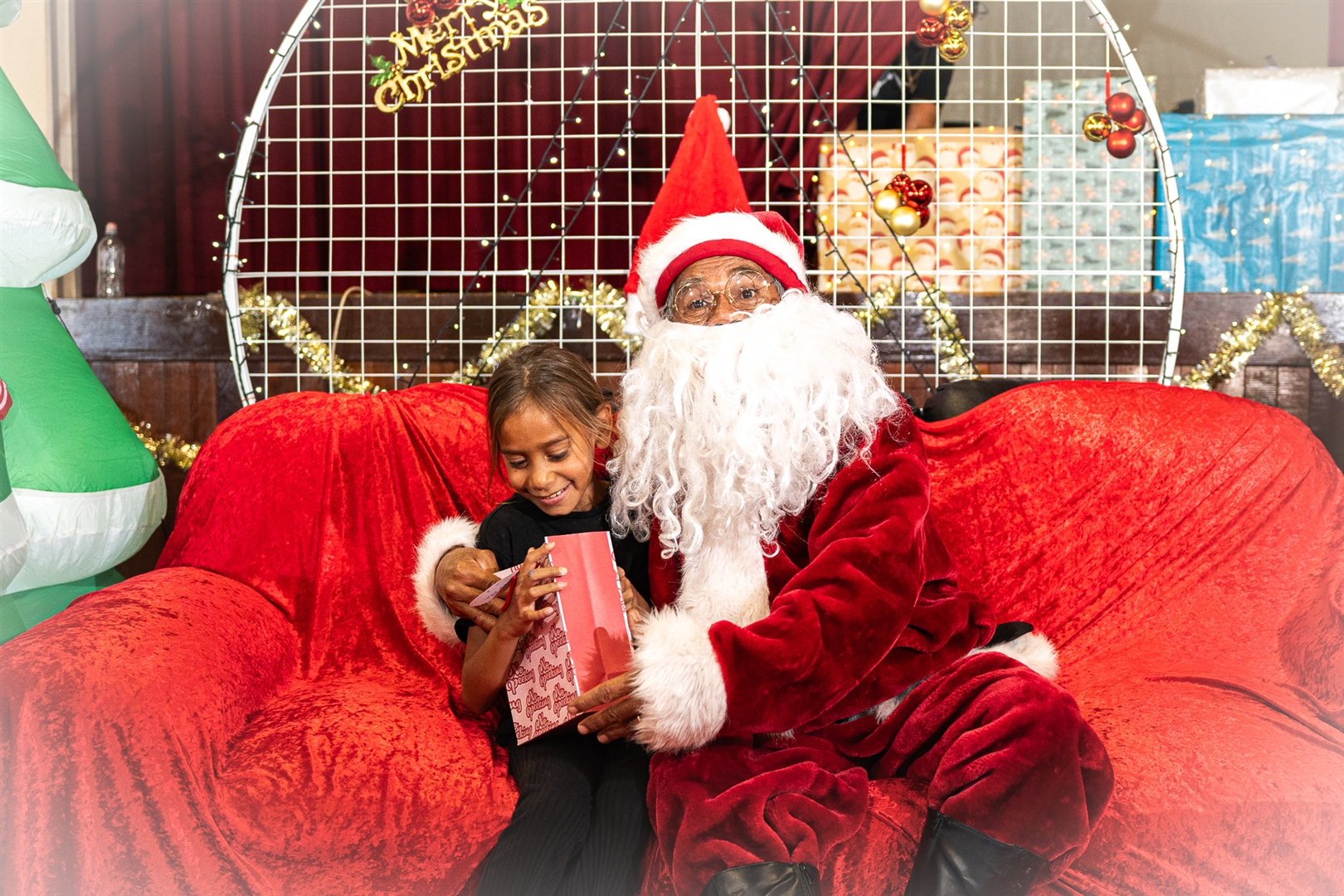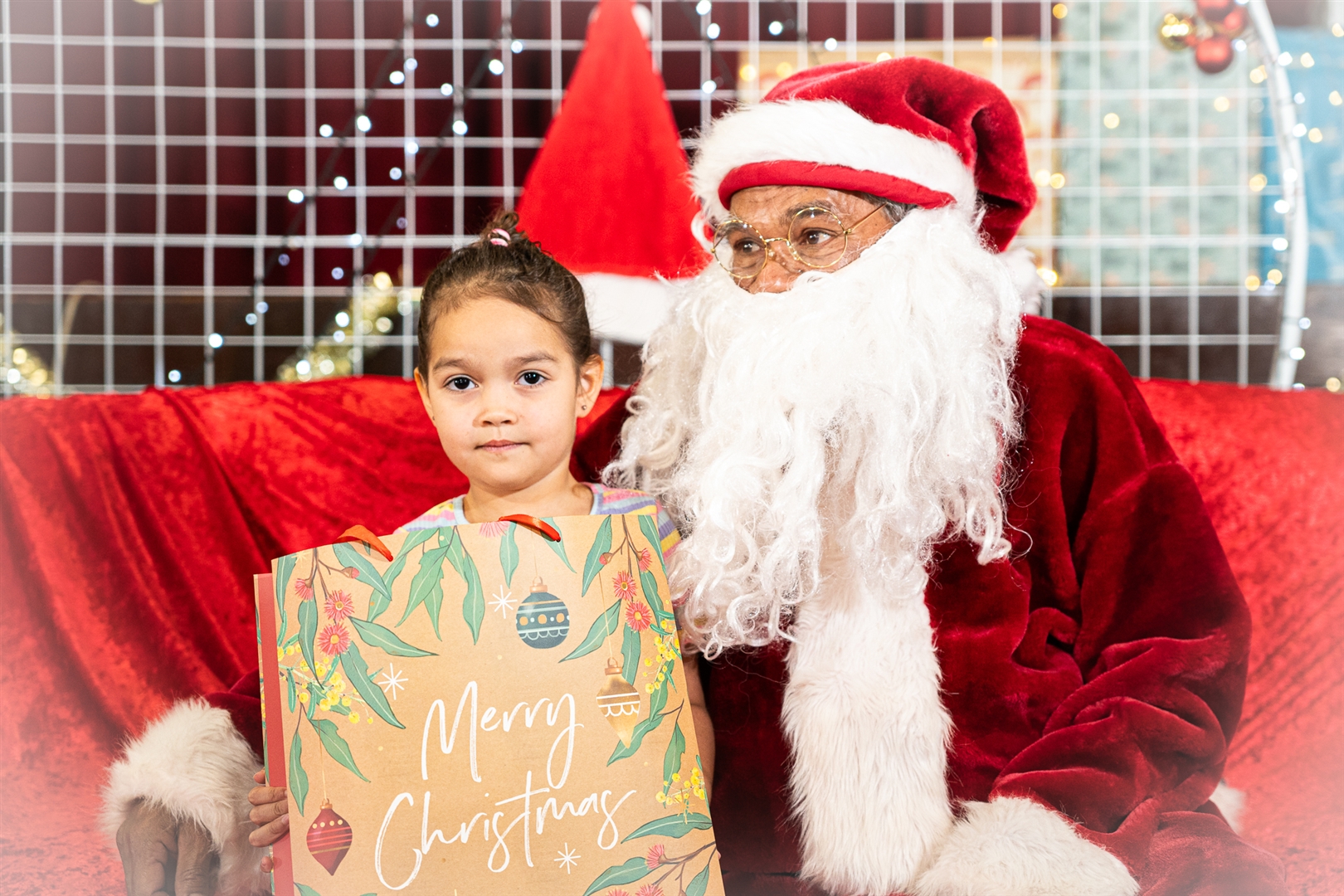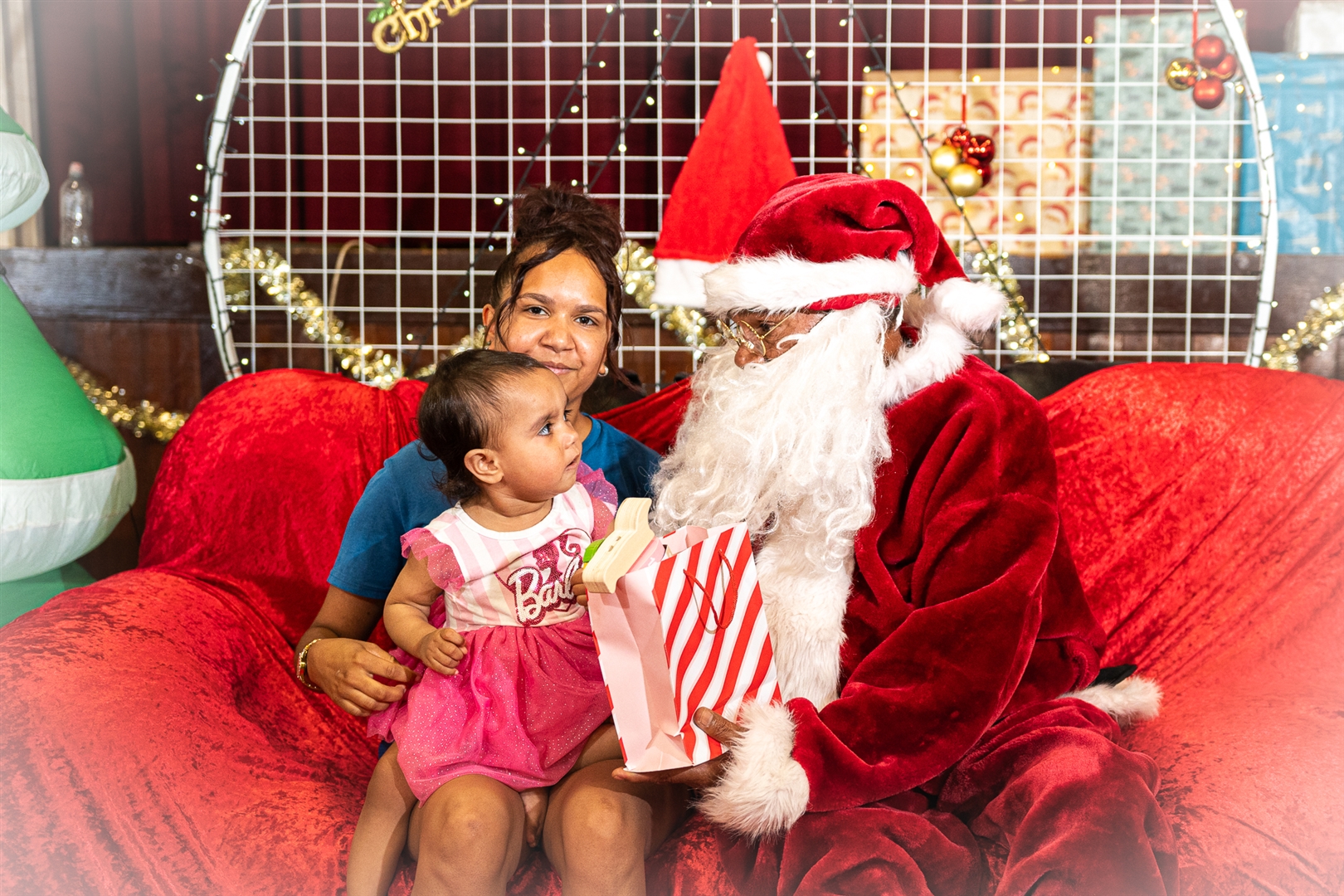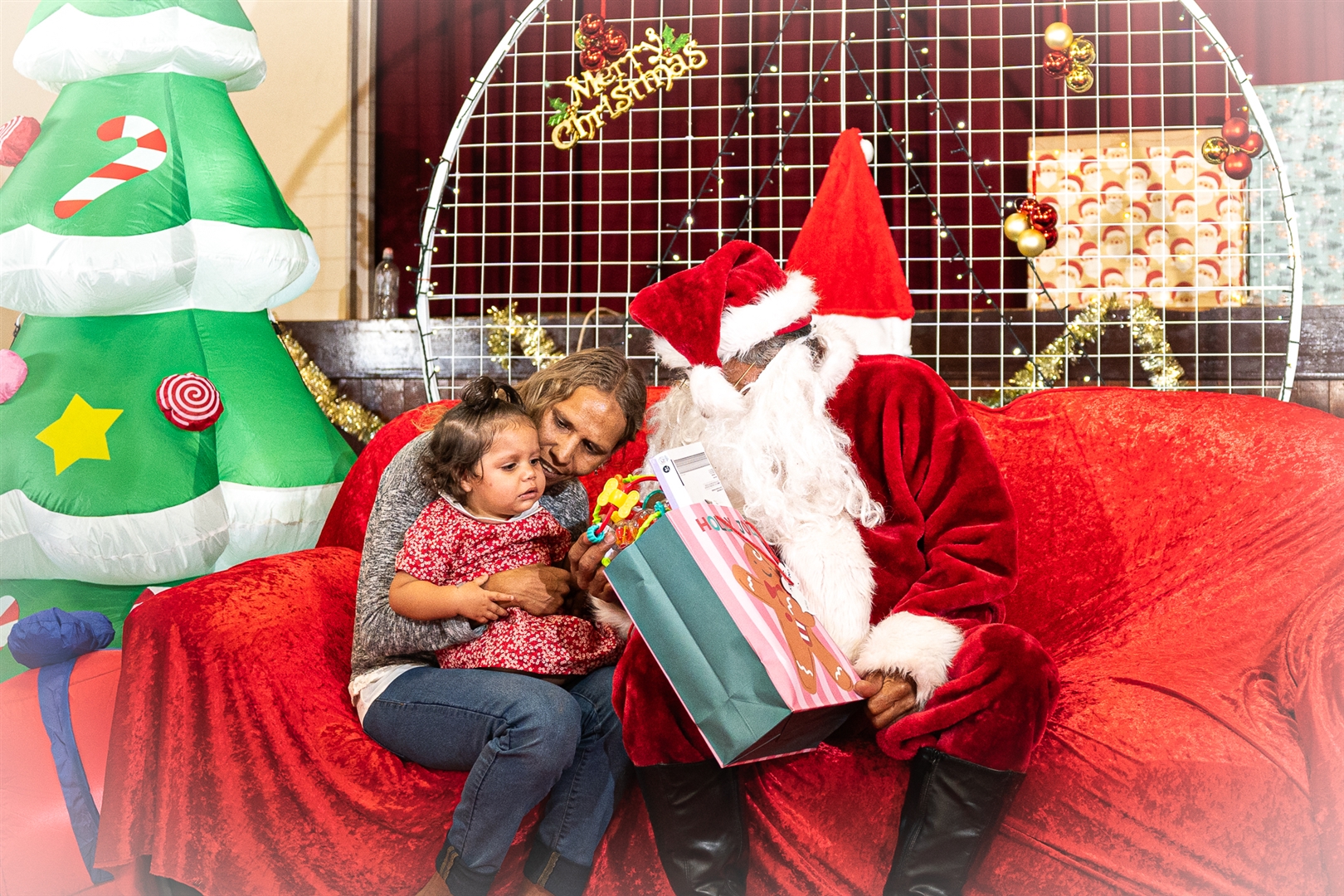 Photos with Santa, Christmas activities, community dinner and pool party.