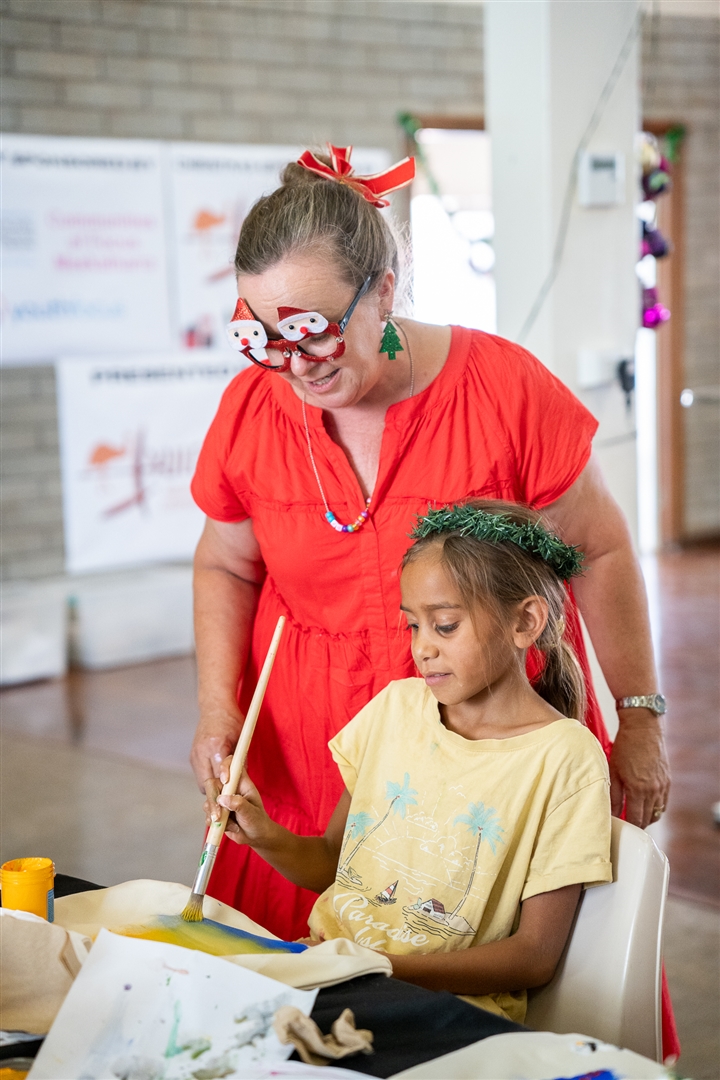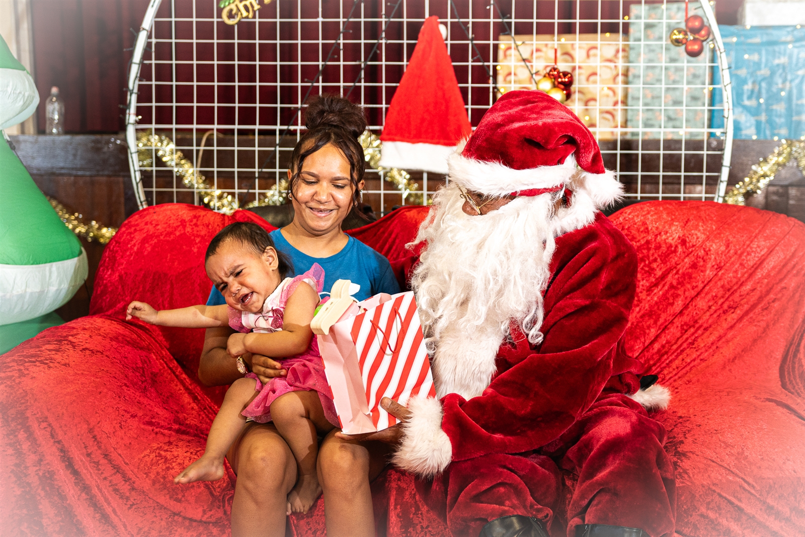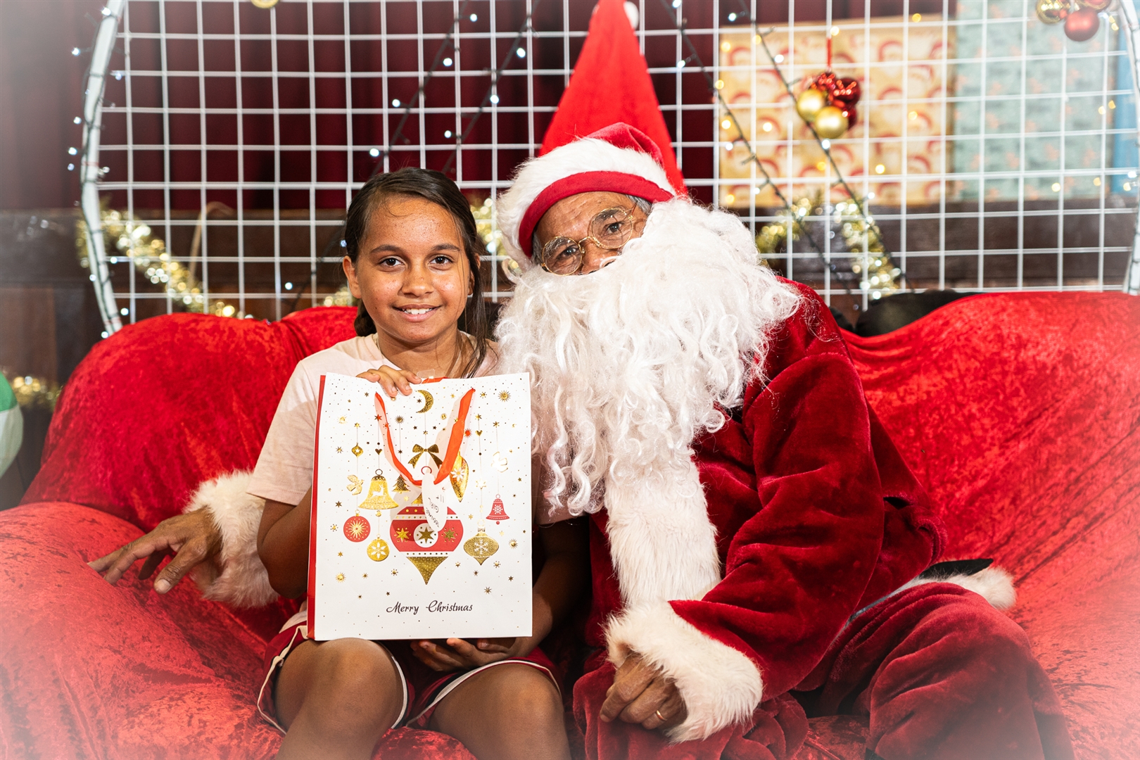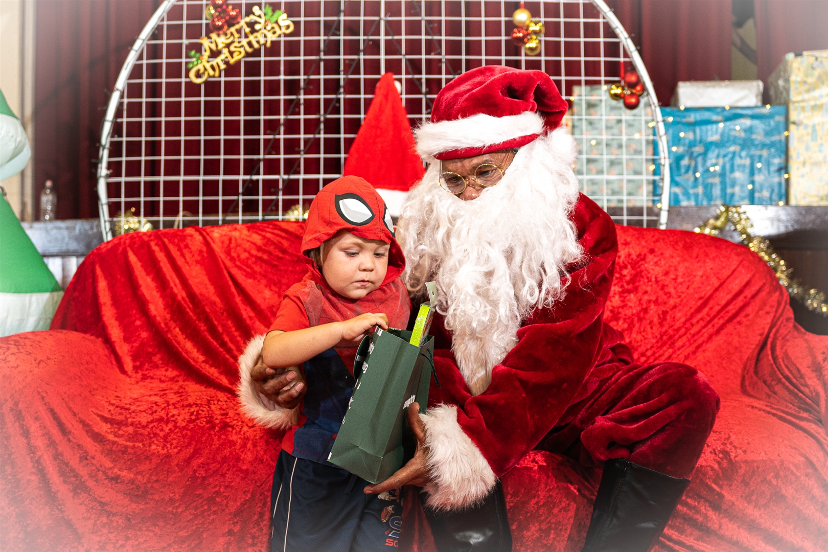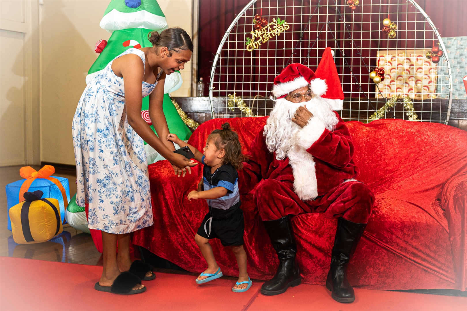 Photos with Santa, Christmas activities, community dinner and pool party.