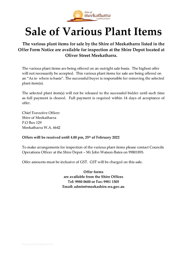 Sale of Various Plant Advert Jan 22
